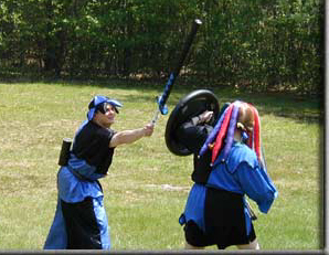 Decalin is teaching Aeowyn to use her shield effectively