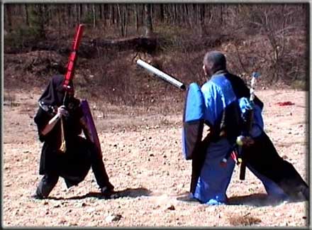 Here, Master Decalin squares off to battle with one of Jubilon's followers, the Speaker. In this battle, the speaker was unaffected by the ancient sword wielded by Master Decalin, but eventually Decalin helped to destroy him and won his prized shield. You can note Flip, Decalins trusty toy Jester, hanging from his belt.